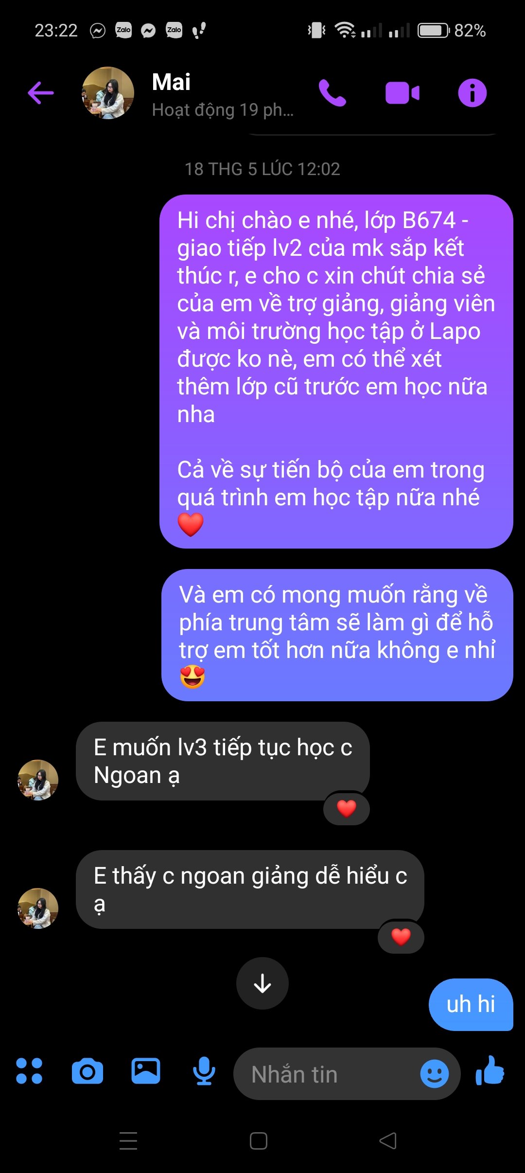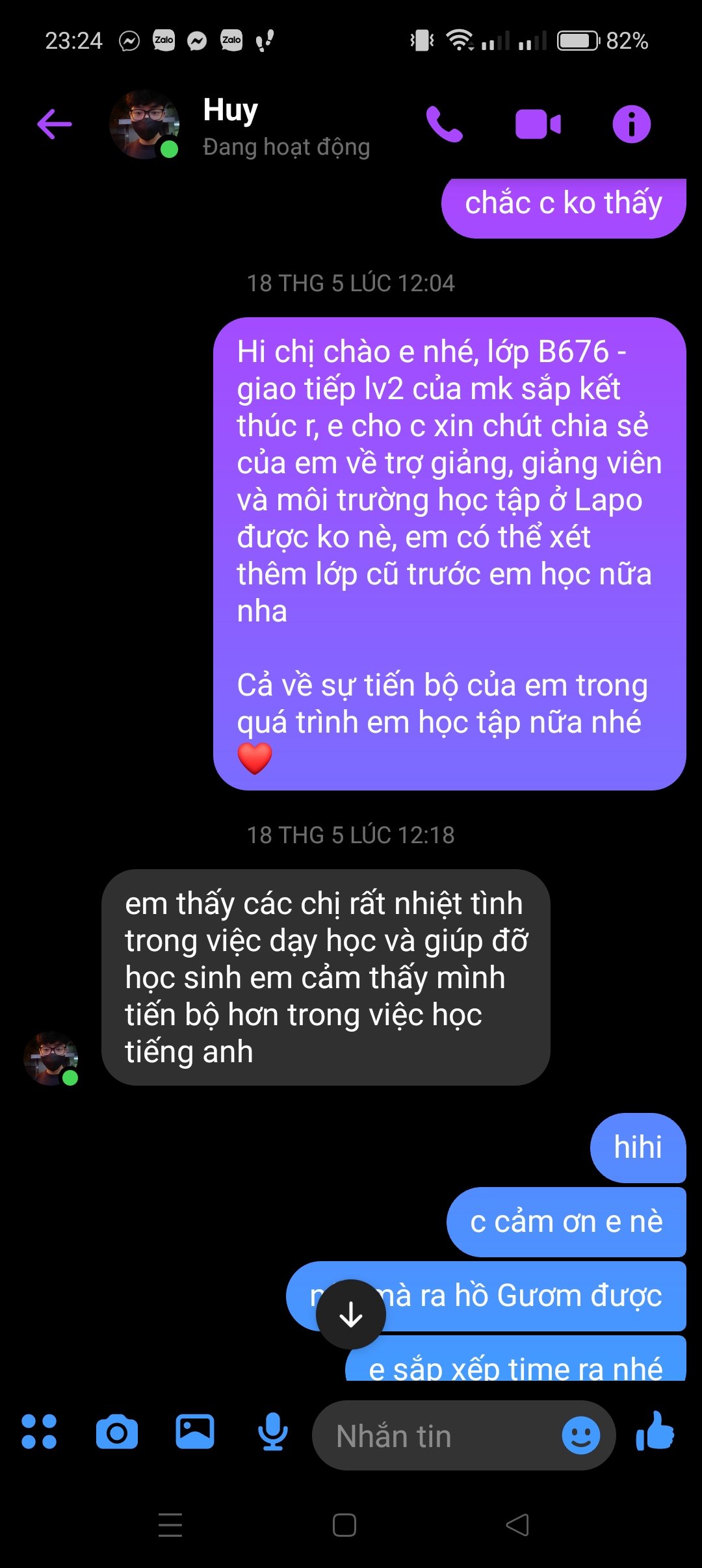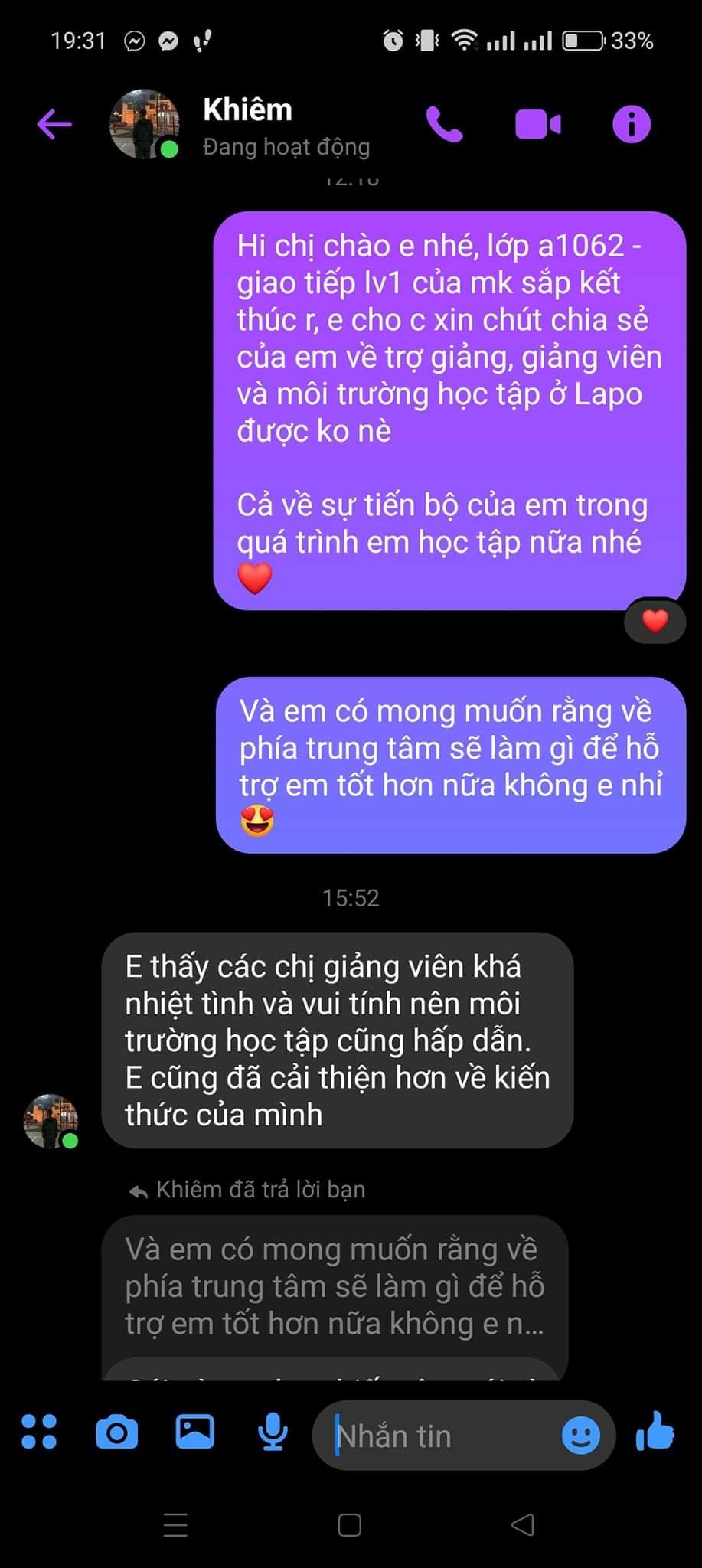Chúng tôi tin tưởng rằng học tập và phát triển bản thân là hành trình của niềm vui khám phá tri thức nếu bạn được tiếp cận đúng phương pháp giáo dục phù hợp với sự khác biệt của bản thân. Cùng tìm hiểu những cảm nhận về hành trình đó từ những học viên đã và đang đồng hành cùng LAPO ENGLISH.