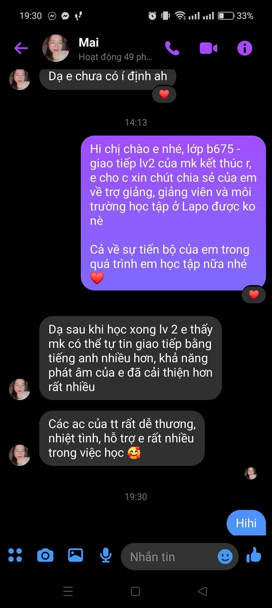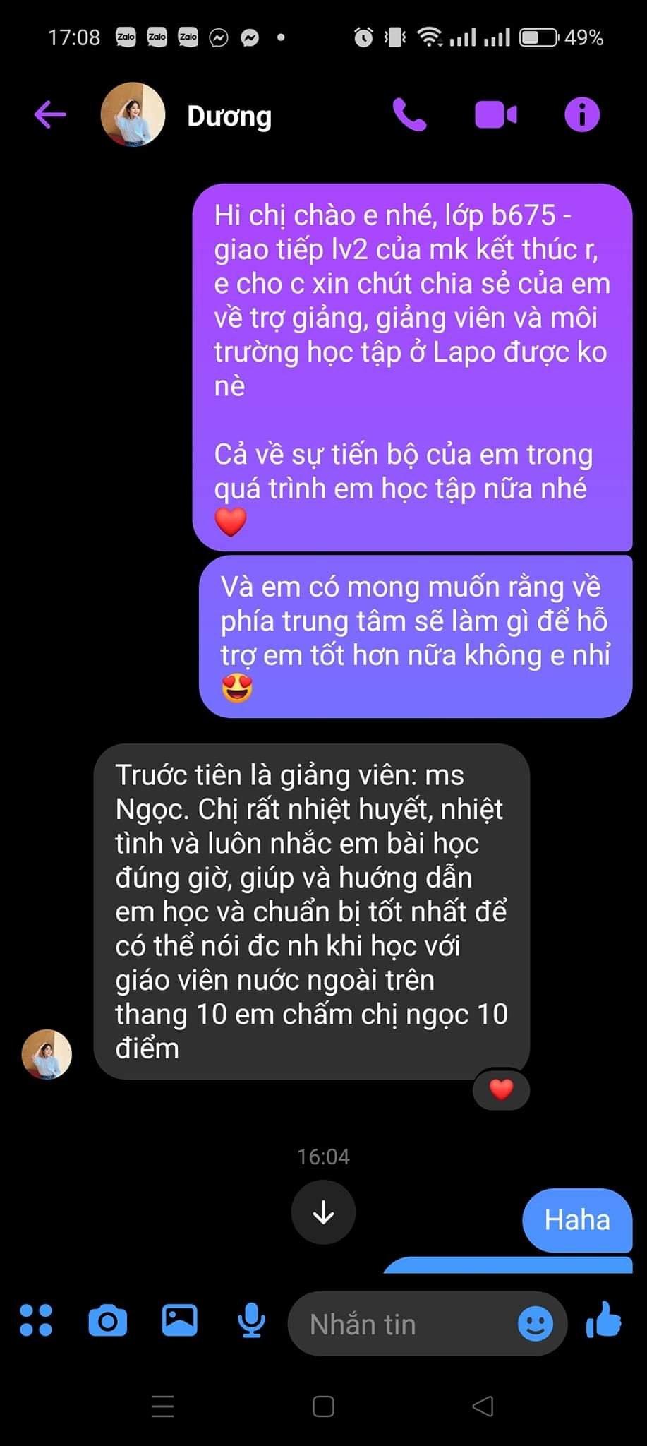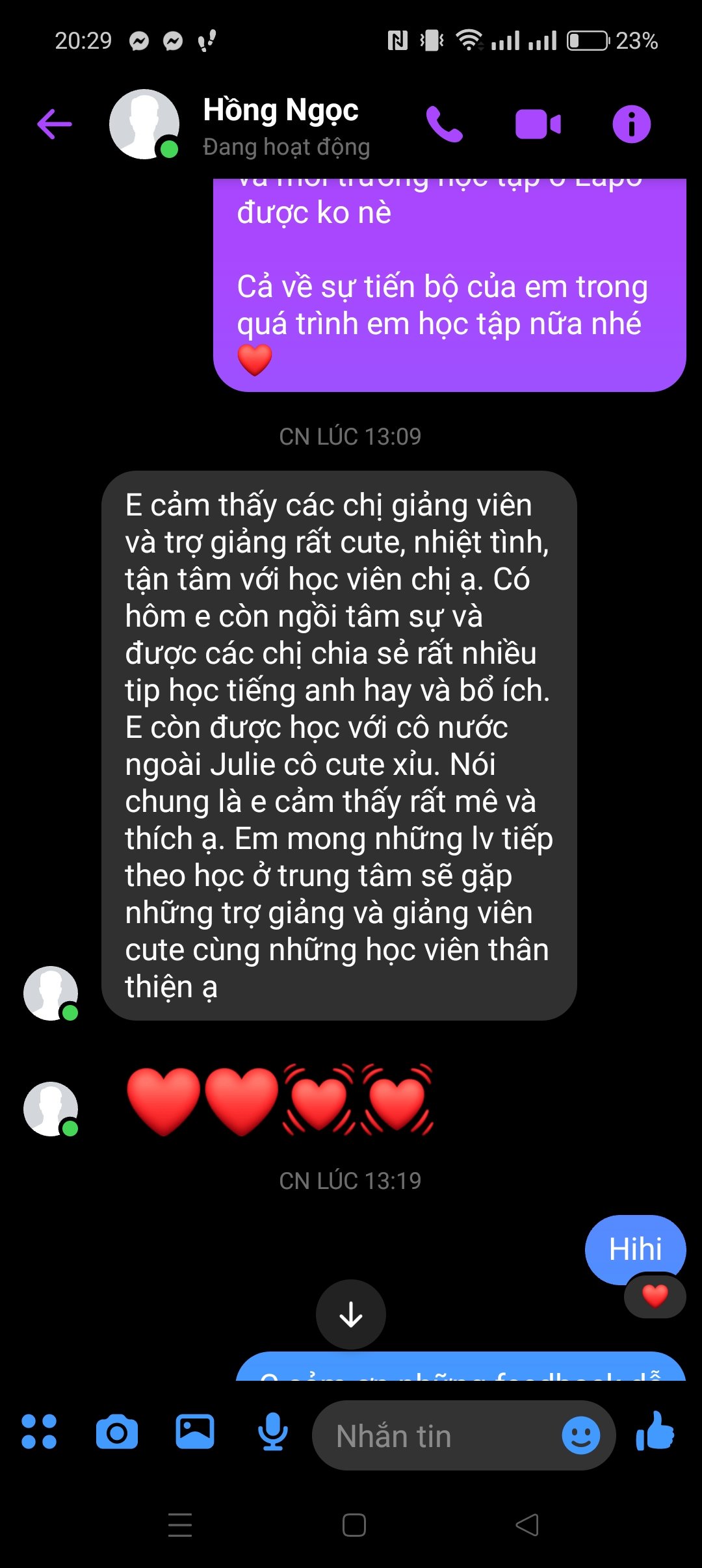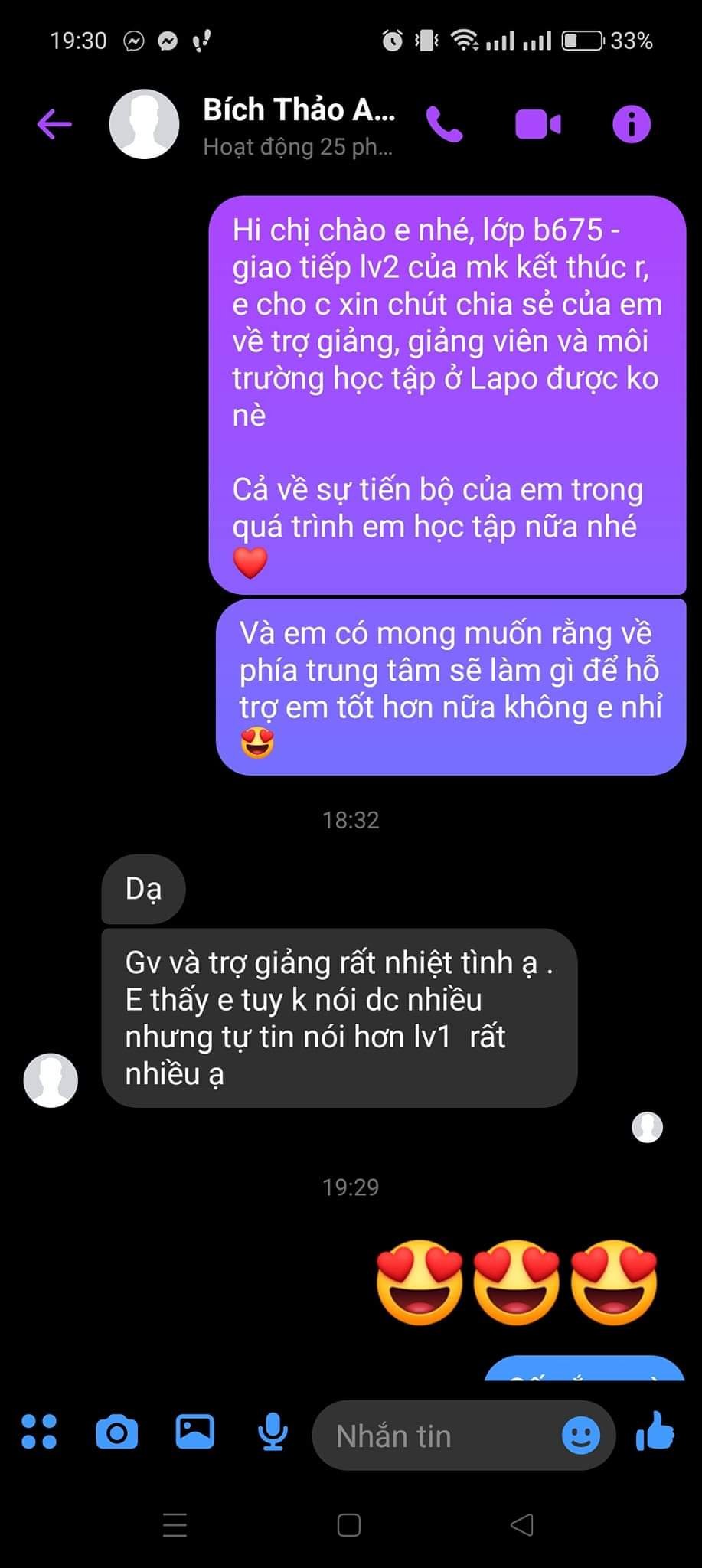 Chúng tôi tin tưởng rằng học tập và phát triển bản thân là hành trình của niềm vui khám phá tri thức nếu bạn được tiếp cận đúng phương pháp giáo dục phù hợp với sự khác biệt của bản thân. Cùng tìm hiểu những cảm nhận về hành trình đó từ những học viên đã và đang đồng hành cùng LAPO ENGLISH.